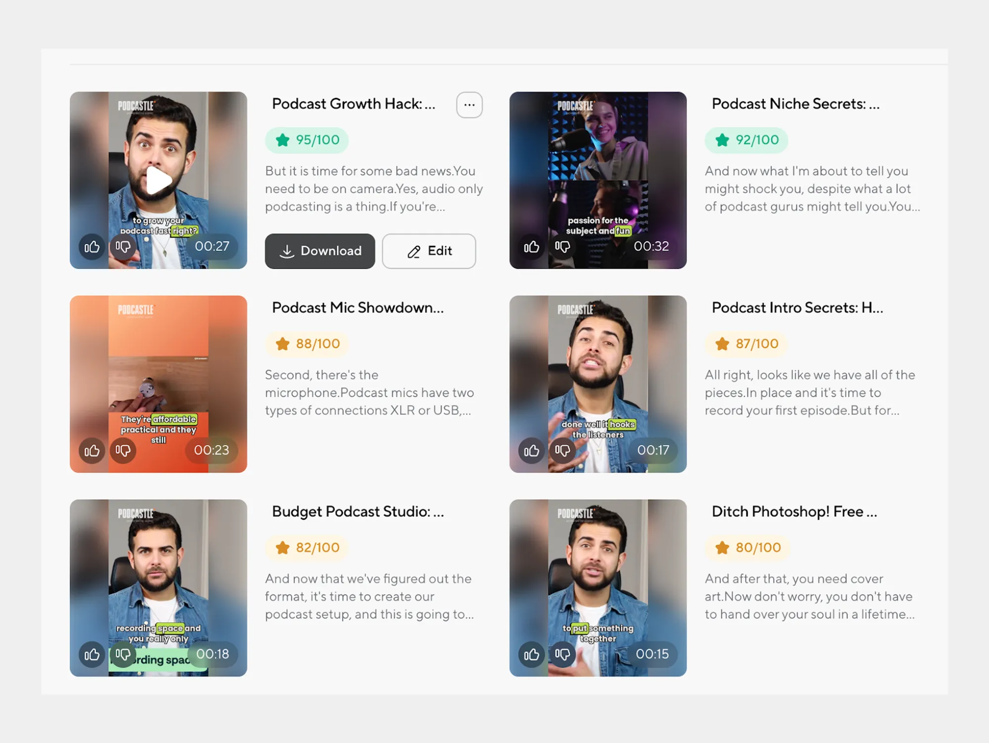 Once your video is uploaded, the AI automatically scans it and suggests potential clips. These might be highlights, strong talking points, or moments that naturally feel complete on their own. You don’t have to accept every suggestion, but having a smart starting point saves a huge amount of time.