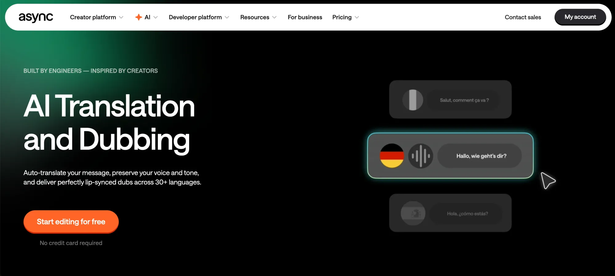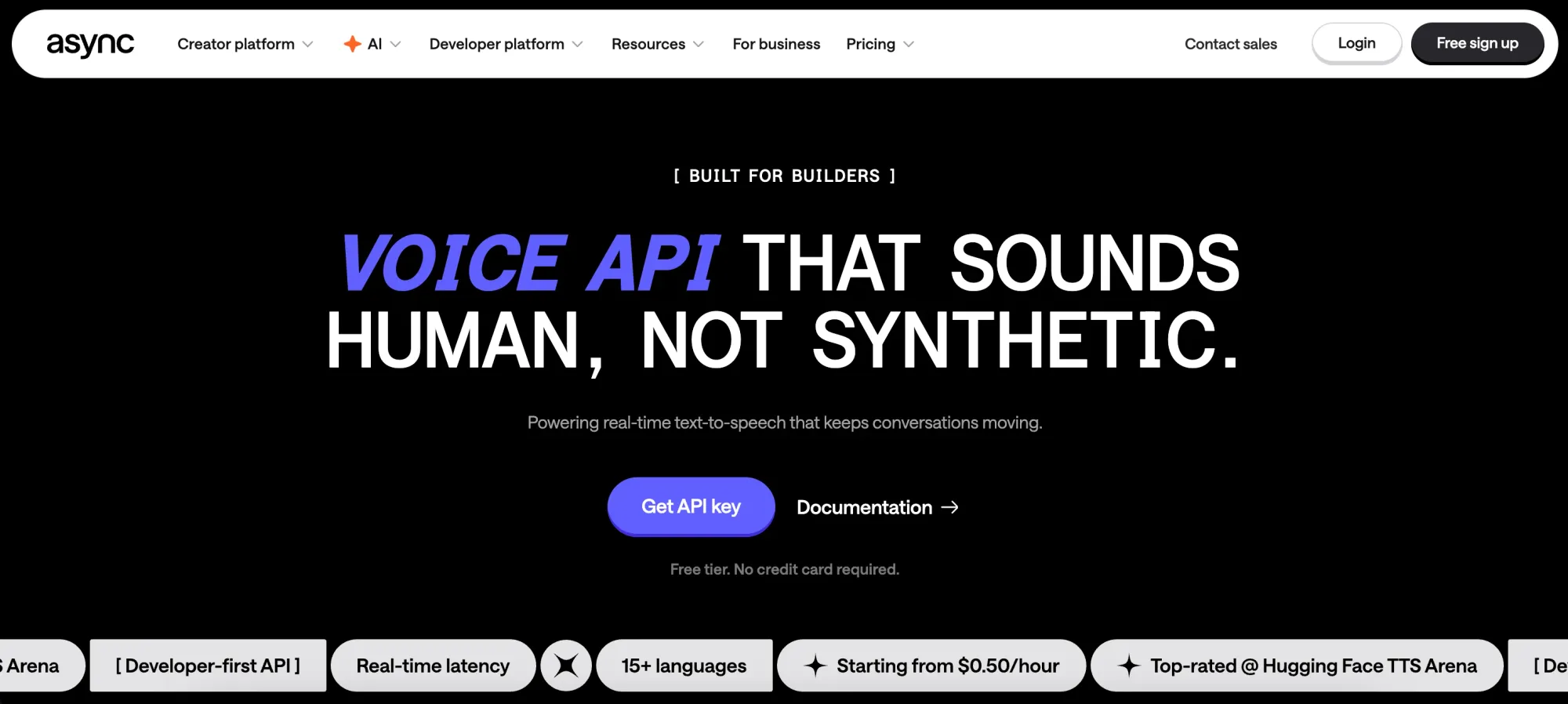 For more interactive use cases, Async supports real-time streaming TTS and voice agents designed for low-latency environments.