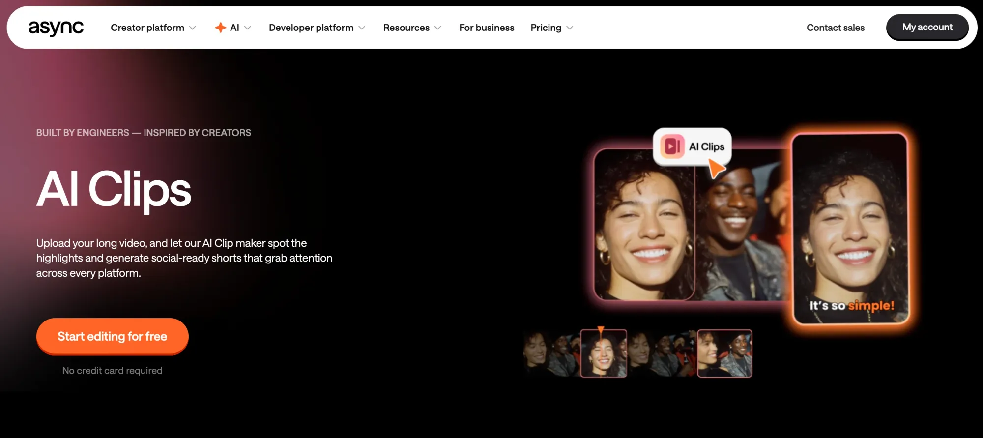 Instead of manually scanning timelines, Async analyzes your content and helps surface moments that work as: