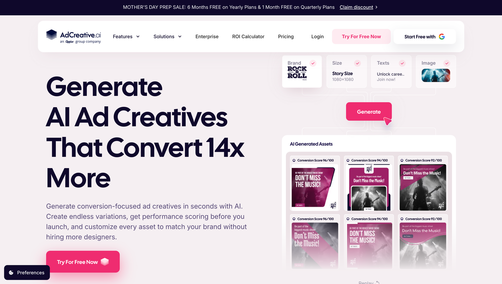 AdCreative.ai is built for speed and volume. It helps agencies generate conversion-focused ad creatives while also giving insights into which ones are likely to perform best.