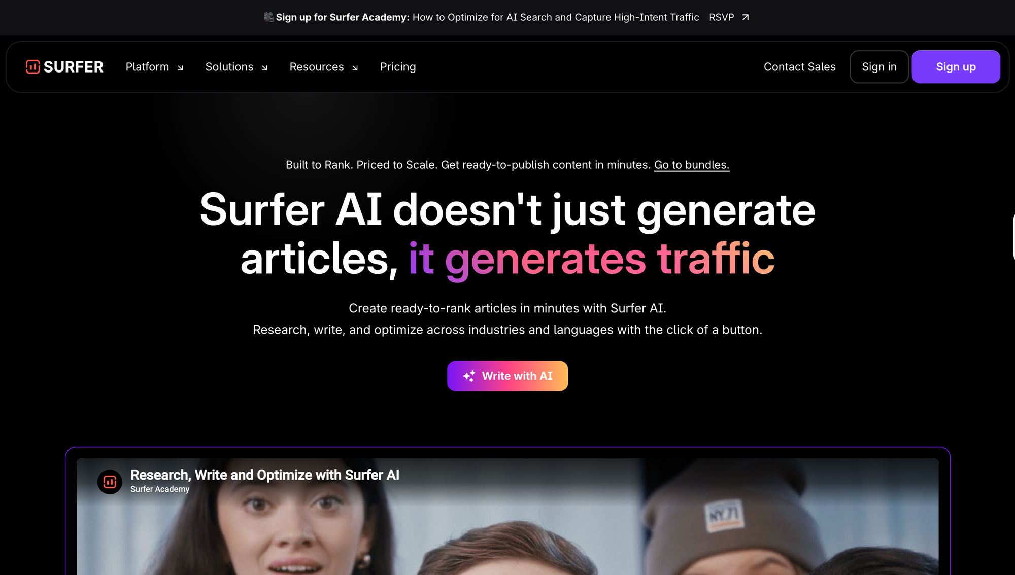 Surfer AI helps agencies create content that is actually optimized to rank. It combines keyword research, structure suggestions, and optimization into one workflow.