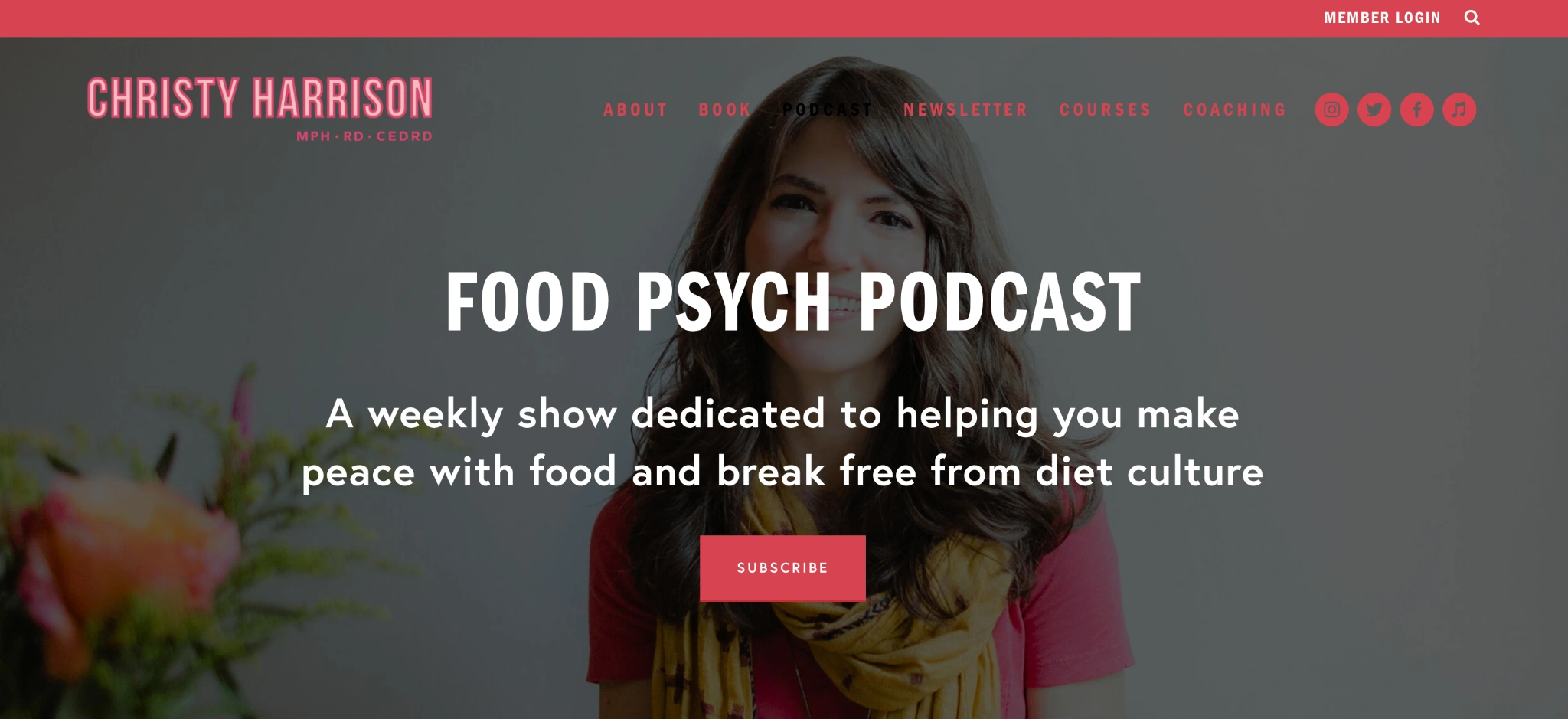 However, most of the podcasts will choose a more conventional approach by simply putting their podcast name as the headline. For example, that’s how Food Psych Podcast designed its landing page by simply including the title and a description of the show.