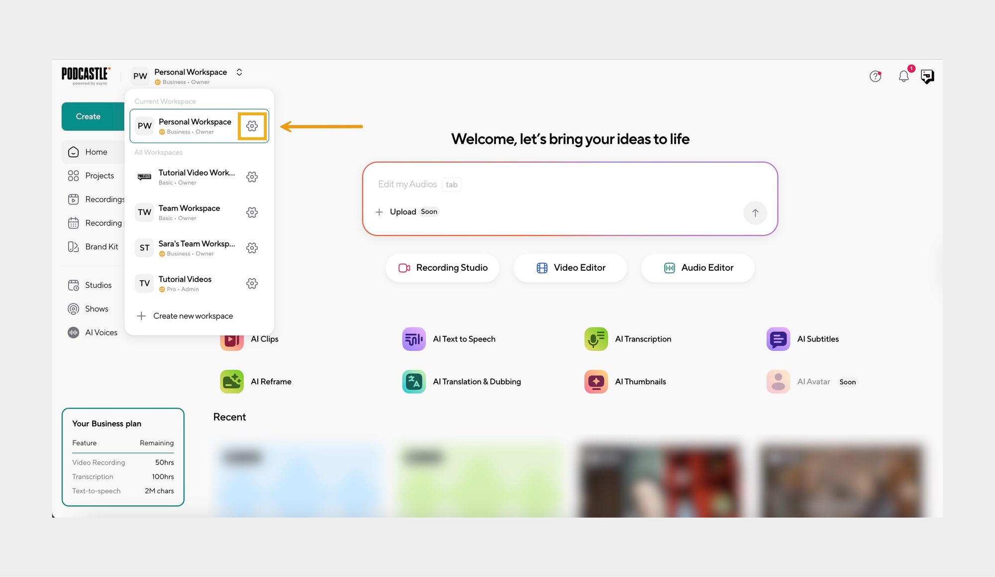 Previously, Podcastle workspaces were split into two types: personal workspaces, where collaboration wasn’t available, and team workspaces, where inviting others was possible. If you started solo and later needed help, that often meant switching workspaces, moving projects, or re-thinking how your setup was organized.