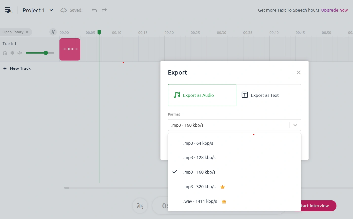 Well, AI does minimize the requirements of technical knowledge but doesn’t make them disappear entirely . Let’s take the example of Podcastle: although it is mainly AI-powered, you will still have to figure out some aspects yourself. For instance, when you export your audio track, you will be asked to choose from the options below: