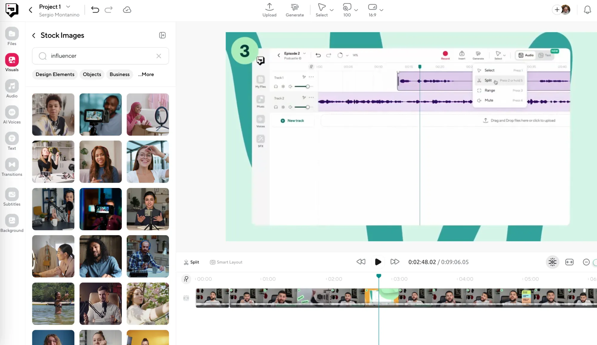 If you already have an image (maybe it’s your podcast cover art, a sponsor logo, or something you made in Canva) just drag it straight into the editor. That’s it. Drop it in. Resize it. Move it. Layer it however you want. You can overlay it on an existing video or place it as the main visual on a blank background.