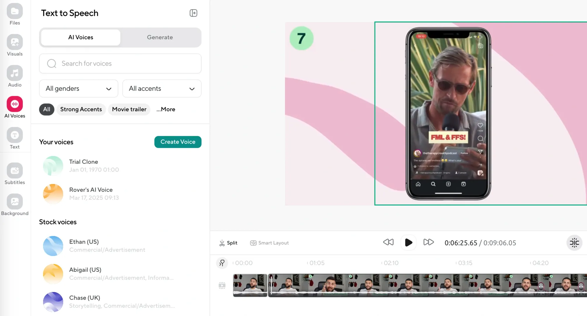 If you’re producing a high volume of content, like social clips, training modules, tutorials, or variations of the same video for different audiences, it doesn’t make sense to hire a voice actor every time. AI voiceovers give you a way to generate consistent, solid narration across dozens of pieces without blowing your budget or slowing down your workflow. You can test different voices, update scripts on the fly, and keep things moving without waiting on turnaround times or juggling back-and-forth revisions.