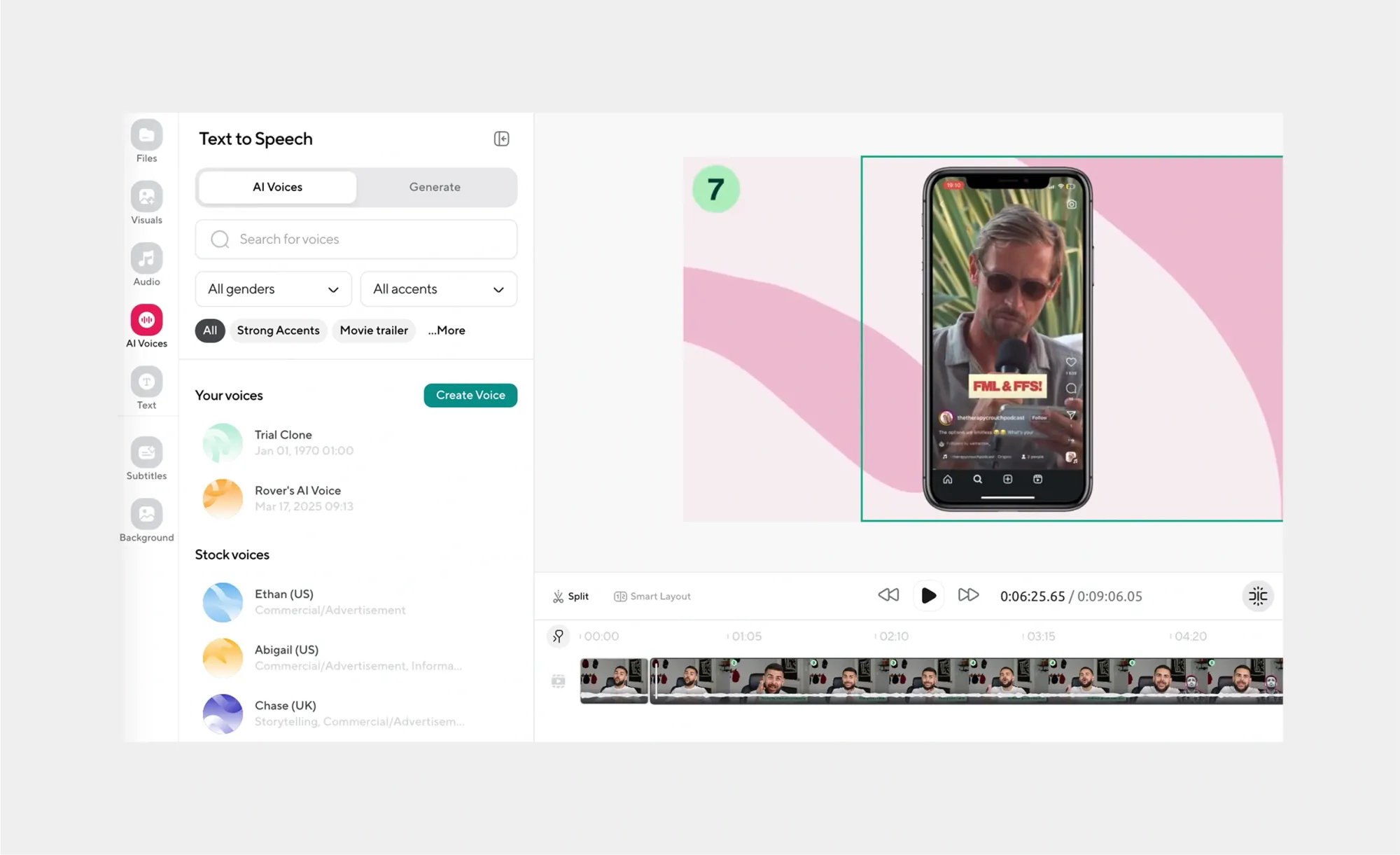Simply write your script, choose a voice that matches your compilation's mood, and let the AI handle the delivery.