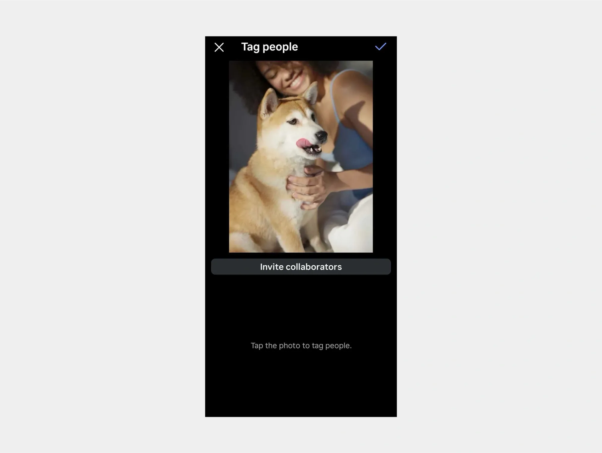 1) Start a new post, select your content, and tap “tag people.”