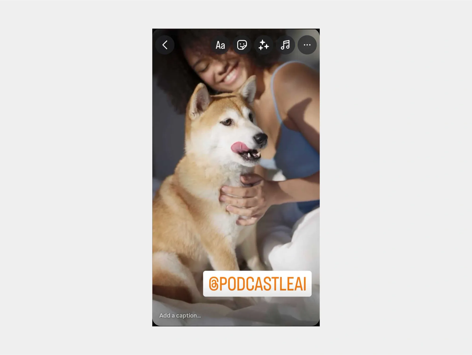 1. Add content, swipe or tap the sticker icon and select "@Mention"
