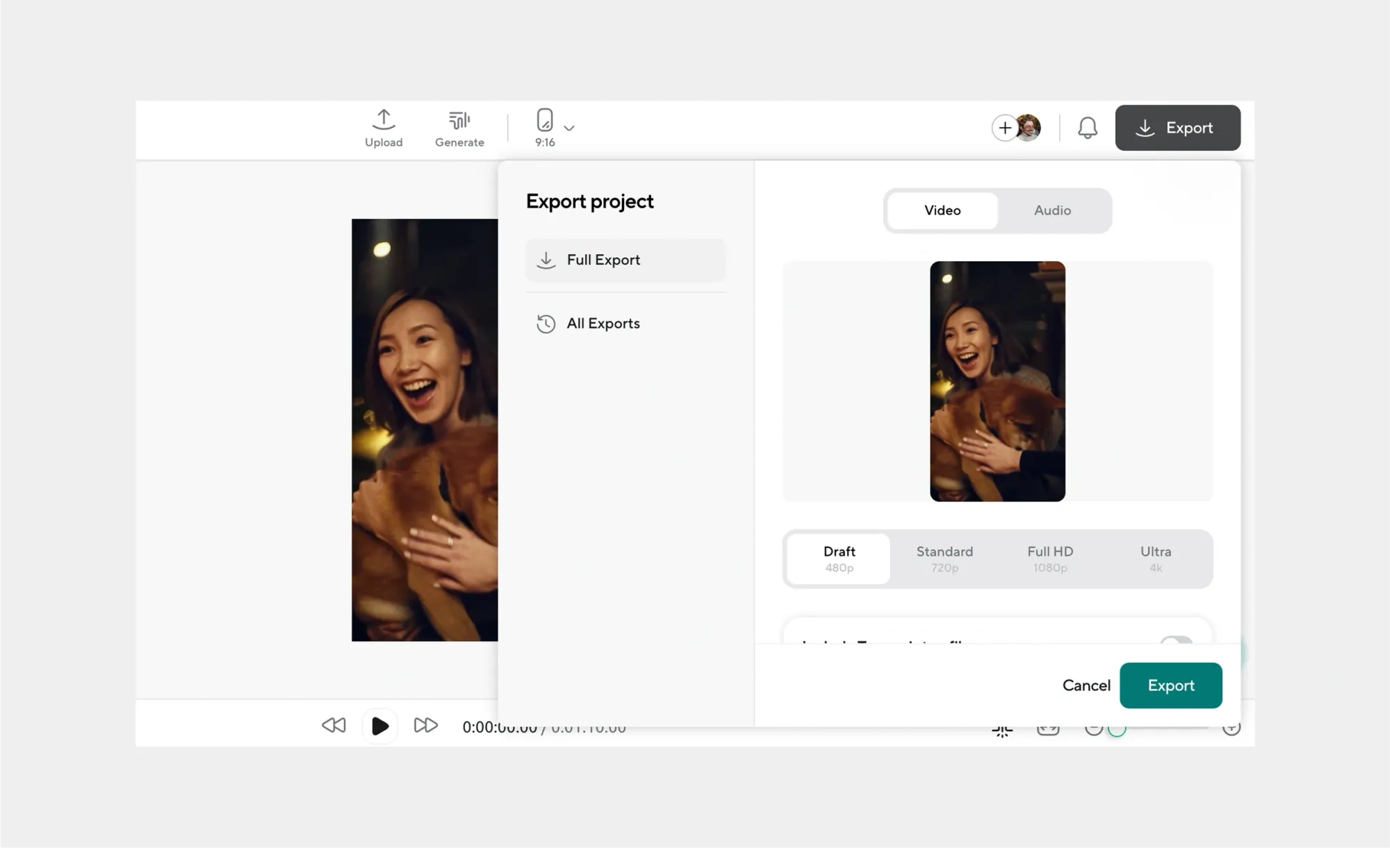 Step 4: Add an AI Voiceover, captions, or subtitles