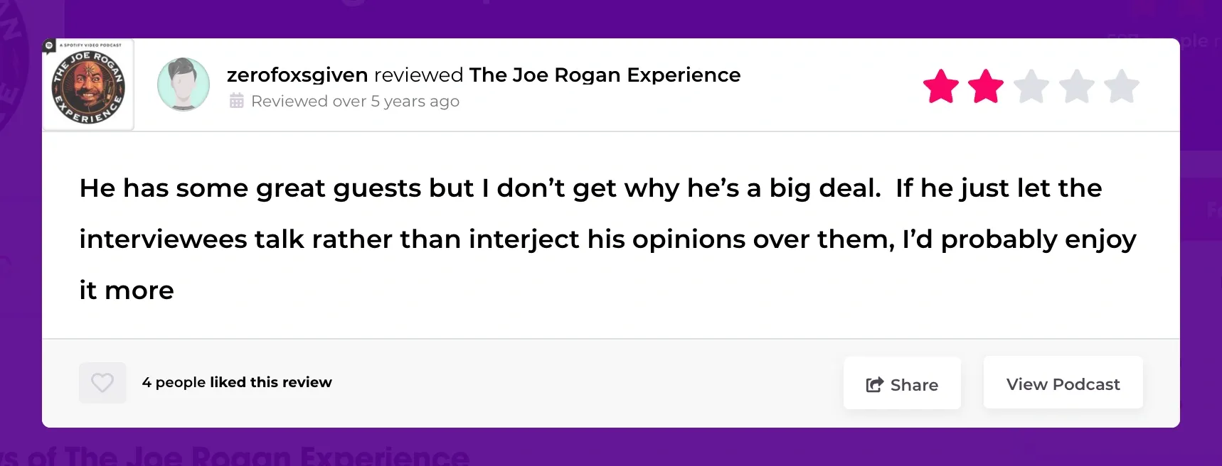 - https://www.podchaser.com/podcasts/the-joe-rogan-experience-10829/reviews/1376
