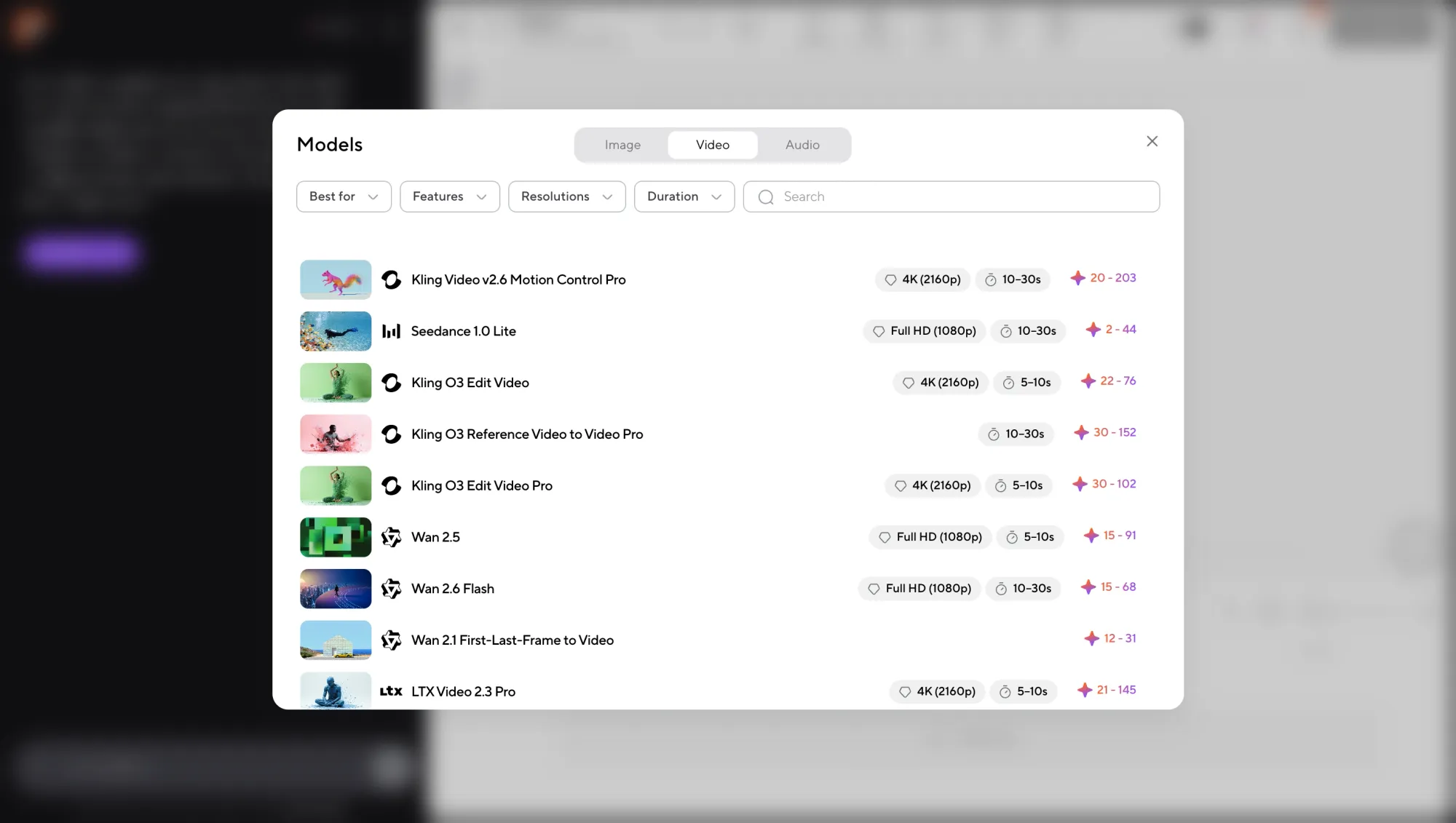 You’ll see access to 100+ AI models for generating videos, images, and more, all directly inside the editor.