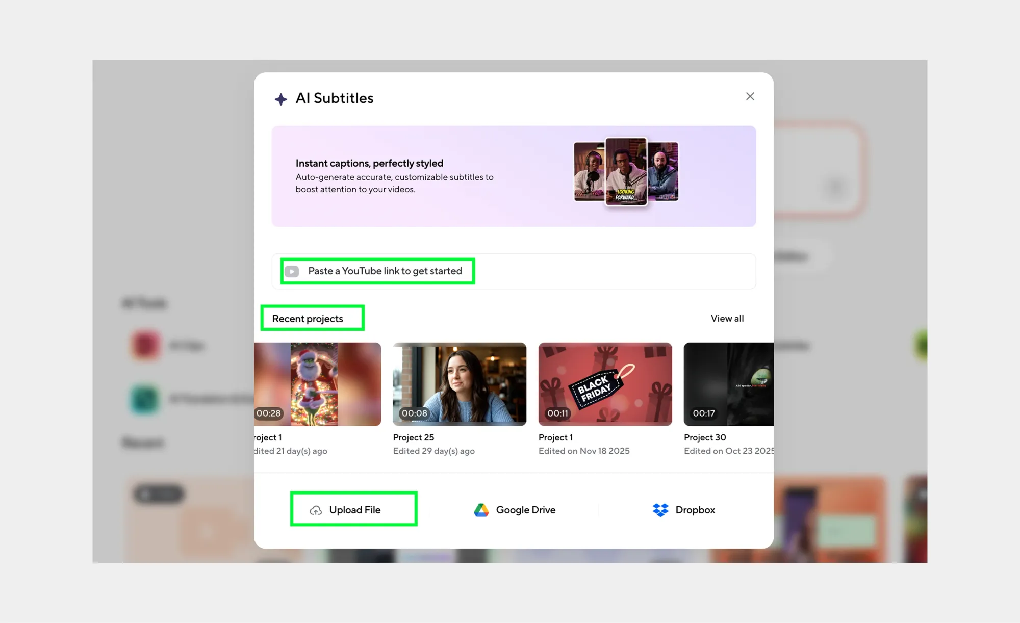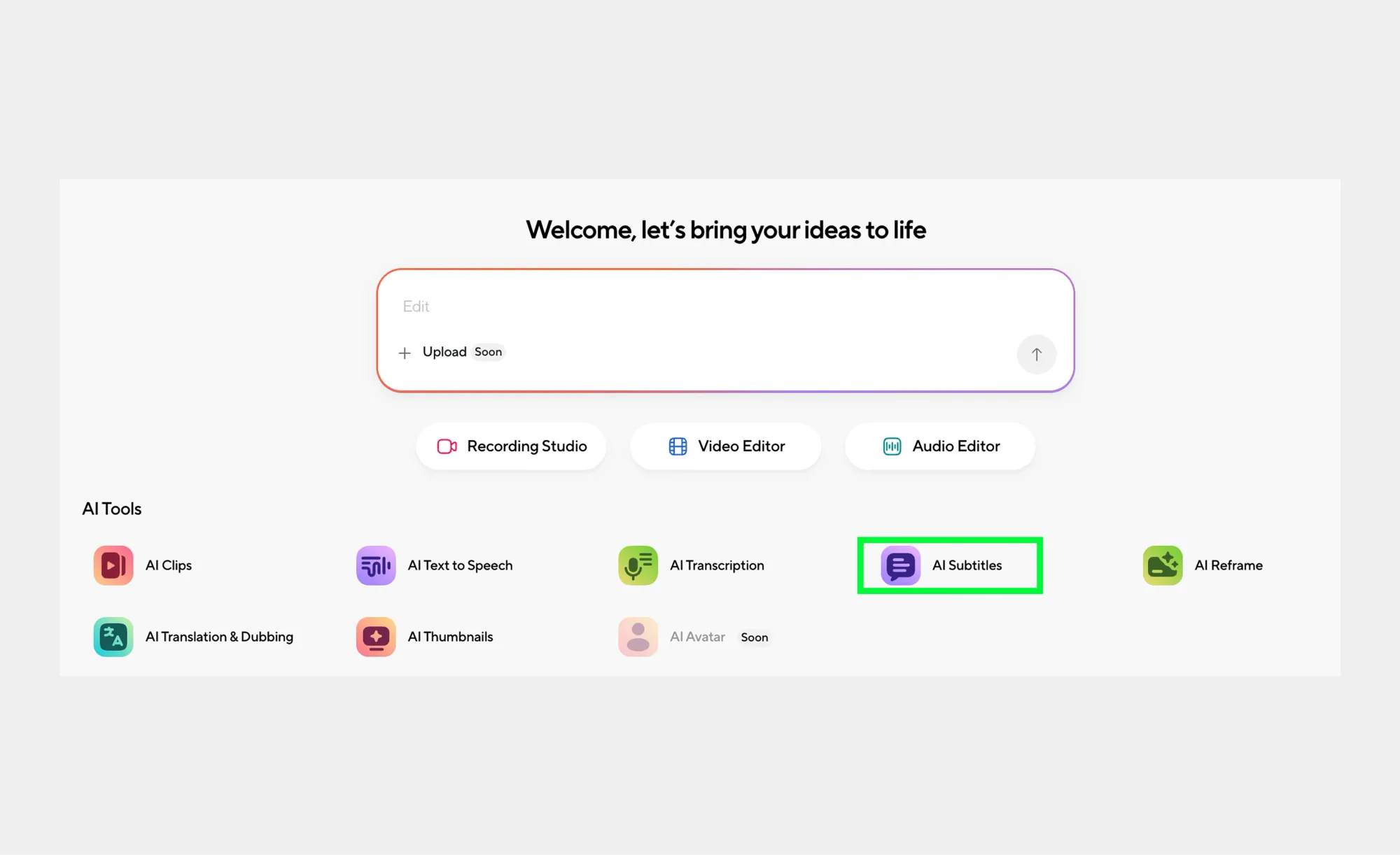 Step 1: Open the AI Subtitles tool