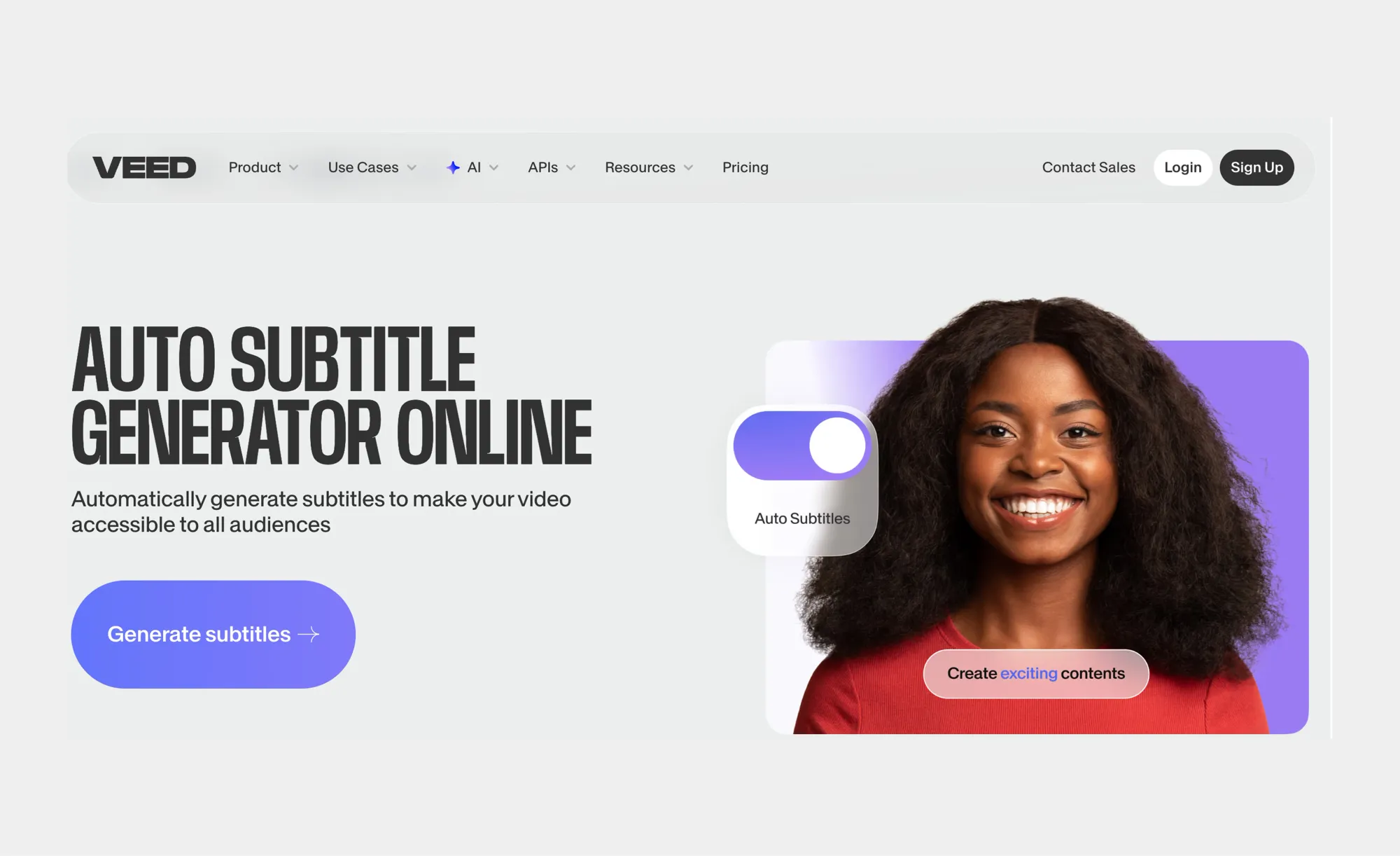 VEED is designed for fast social media subtitling. It generates AI subtitles quickly and includes automatic styling, ideal for short-form videos and marketing content.