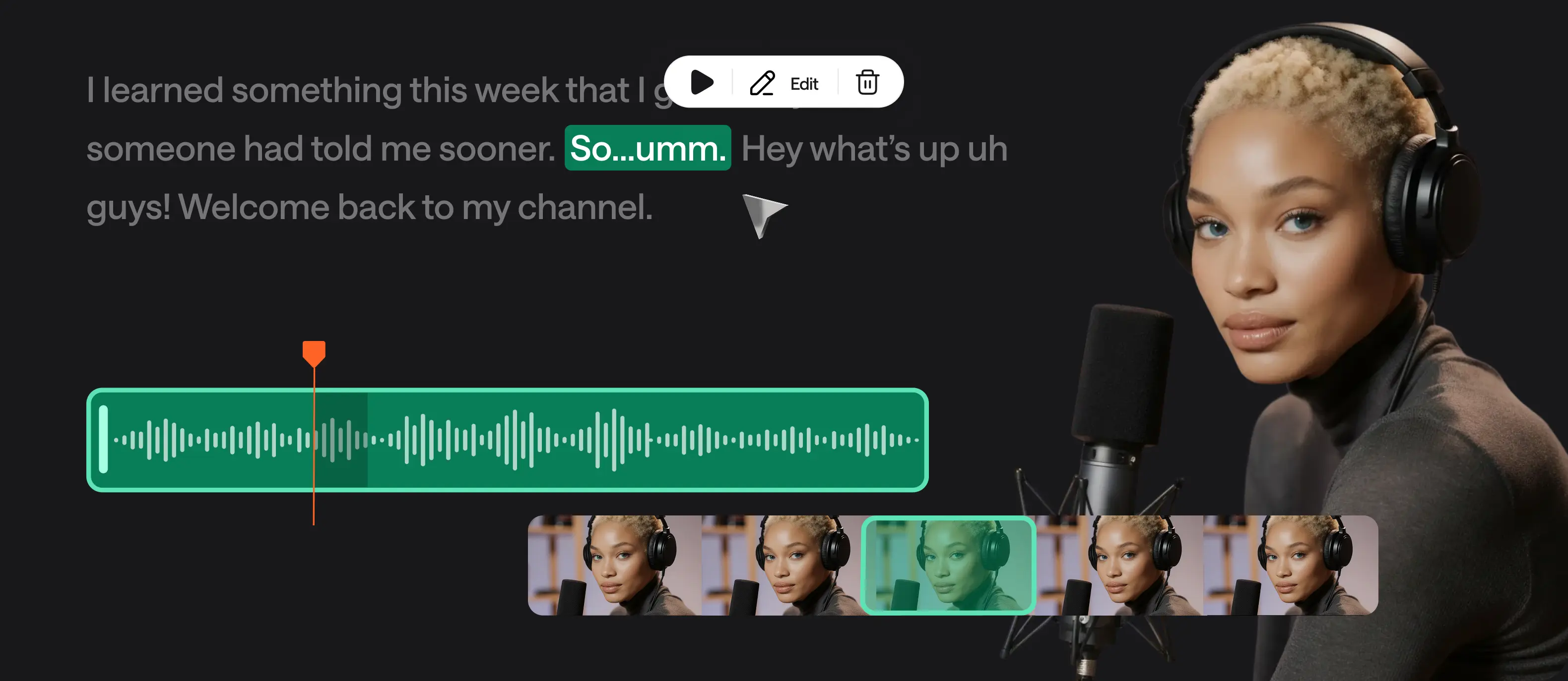 Our intuitive text-based AI Audio Editor removes noise, trims mistakes, and levels voices instantly, giving you clean, studio-quality sound in seconds.